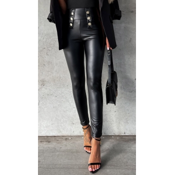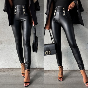 Street Fashion High-rise Buttoned Artificial Leather PU Pants