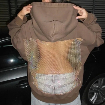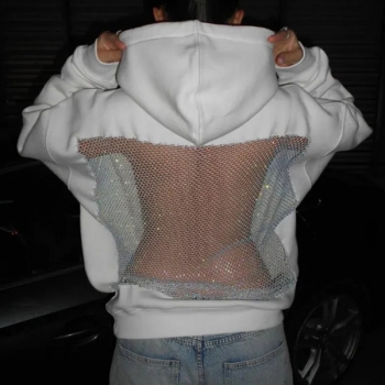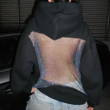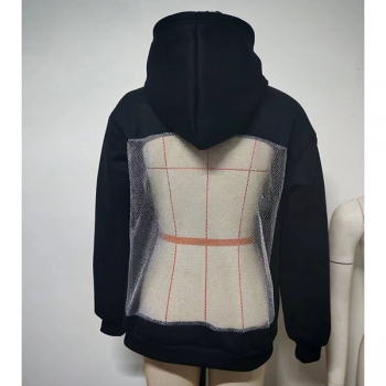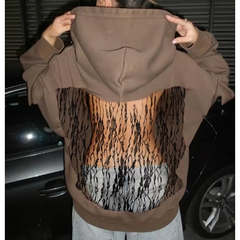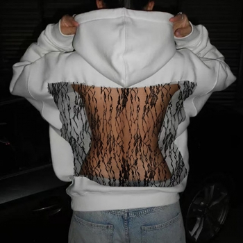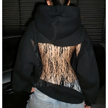 Street Fashion Hooded Long Sleeve Back Mesh Spliced Sweatshirt