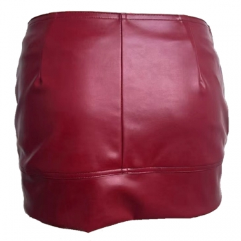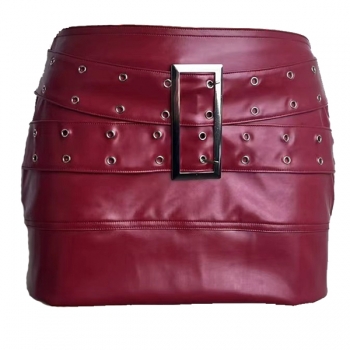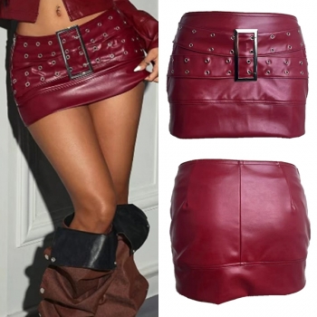 Street Fashion Low-rise Square Buckle Artificial Leather PU Mini Skirt