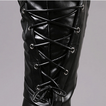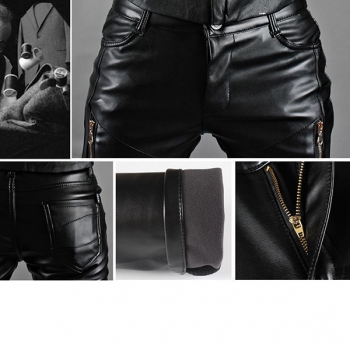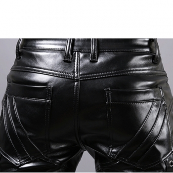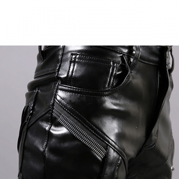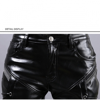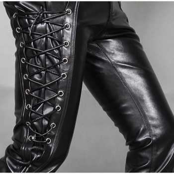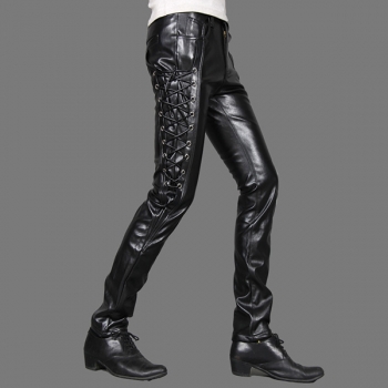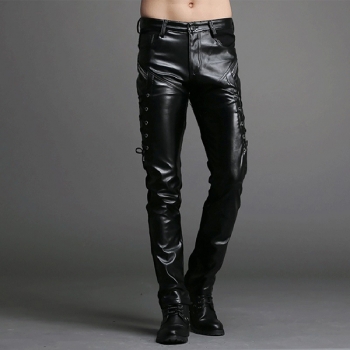 Street Fashion Side Lace-up Artificial Leather PU Skinny Pants for Men