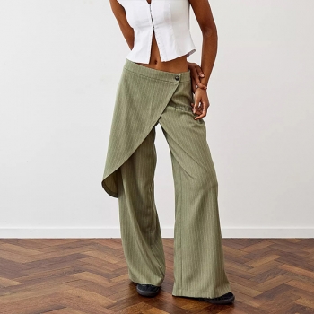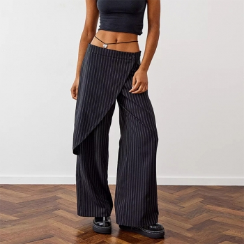 Street Fashion Vertical Stripe Irregular Wrap Straight-cut Pants