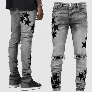 Stretchy Slim Fit Star-Ripped Denim Jeans