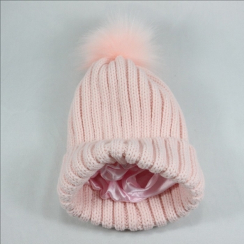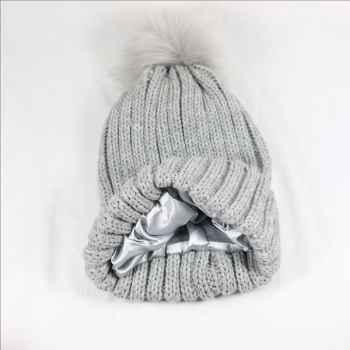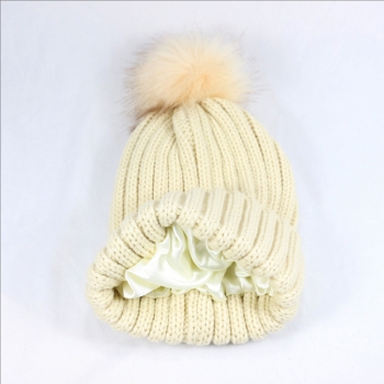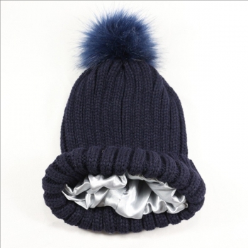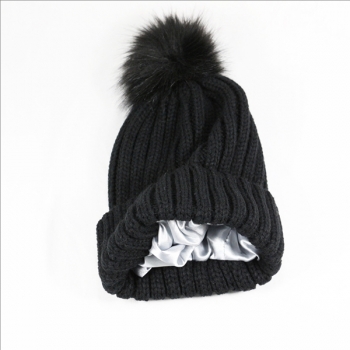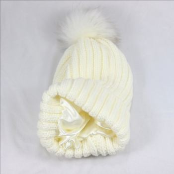 Thermal Winter Beanie with Satin Lining and Pom-pom for Outdoor Use, Prevents Hat Hair & Static