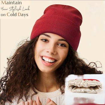 Thermal Winter Beanie with Satin Lining for Outdoor Use, Prevents Hat Hair & Static