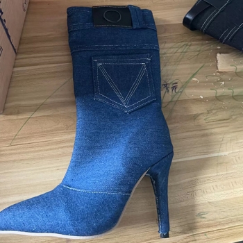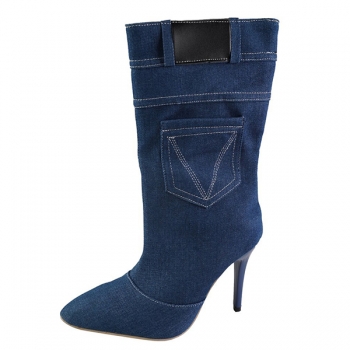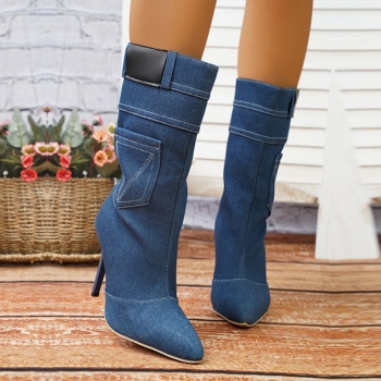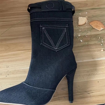 Thin Heeled Denim Boots Pointed Toe Knight Style Knee High Boots