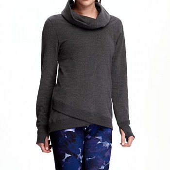 Trendy Solid Color Pile Collar Long Sleeve Irregular Hemline Women's Sweatshirt