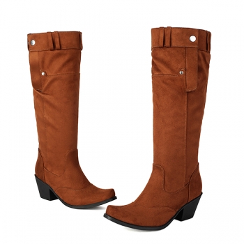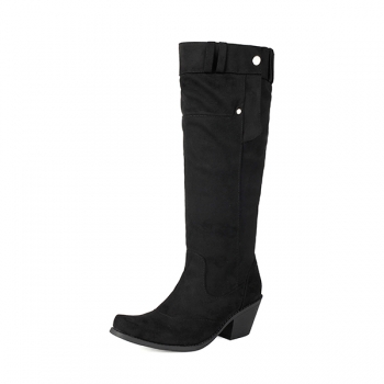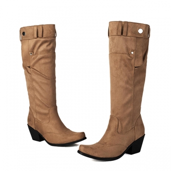 Vintage Block Heeled Side Button Suede Boots