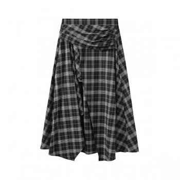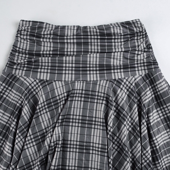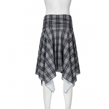 Vintage Draped High-rise Irregular Hemline Plaid Skirt