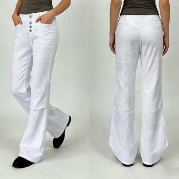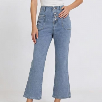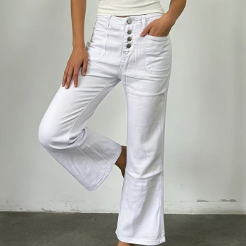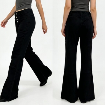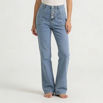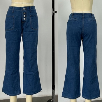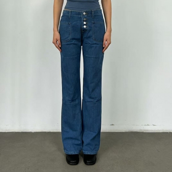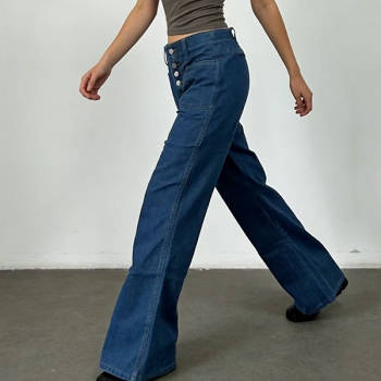 Vintage Front Button High-rise Patch Pockets Wide-leg Jeans