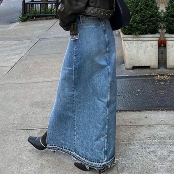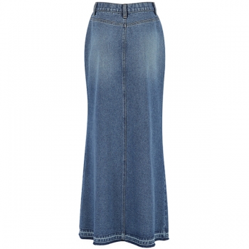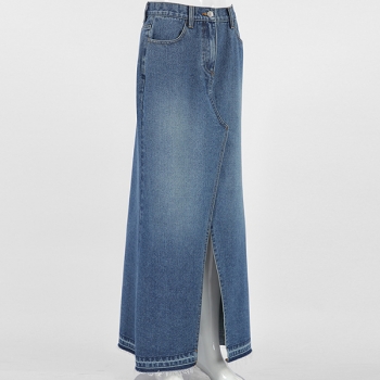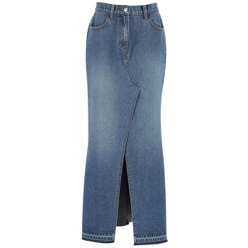 Vintage Front Slit Old-washed Denim Skirt