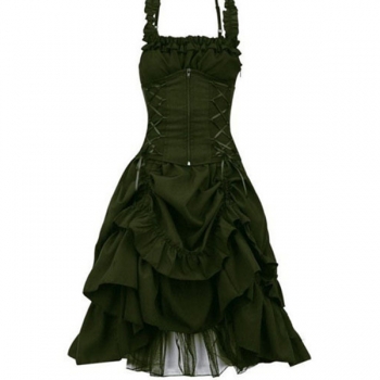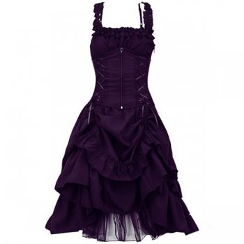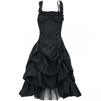 Vintage Gothic Style Ruffled Lace-up Tiered Cinch Waist Dress for Party/Dancing