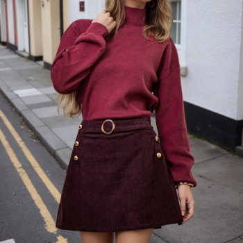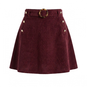 Vintage High-rise O-ring Side Button Corduroy Mini Skirt