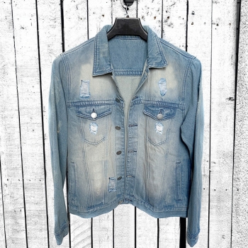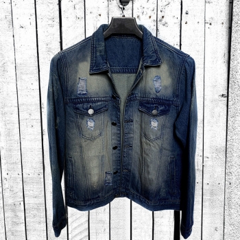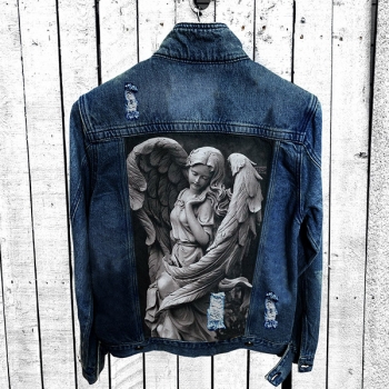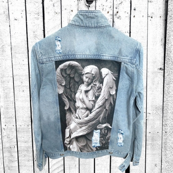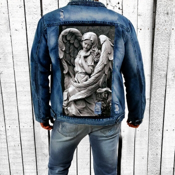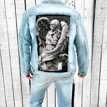 Vintage Old-washed Distressed Angel Printed Denim Jacket for Men