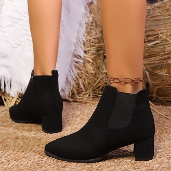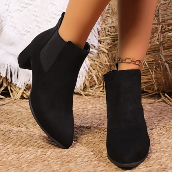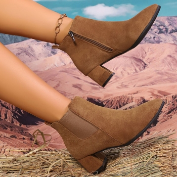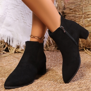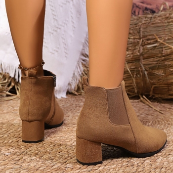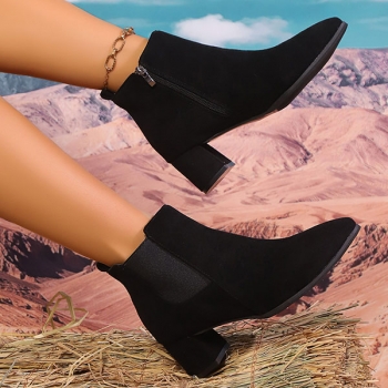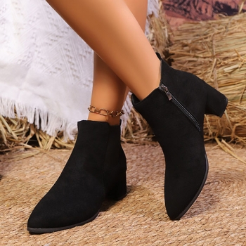 Vintage Solid Color Side Zipper Block Heel Ankle Boots