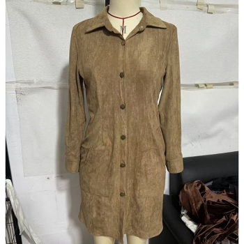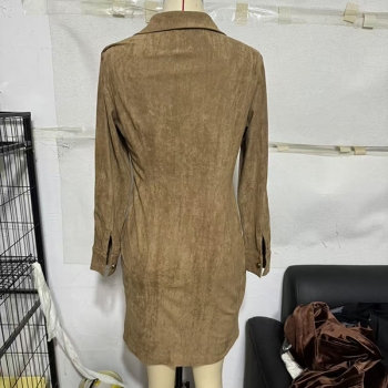 Vintage Stand Collar Front Button Long Sleeve Dress