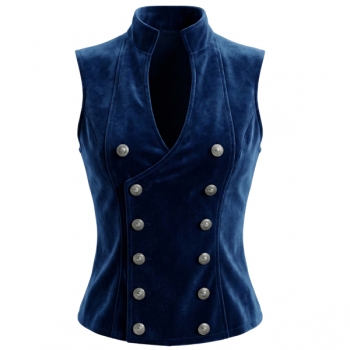 Vintage V-neck Double-breasted Sleeveless Velvet Shirt