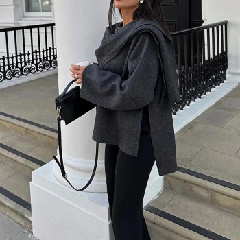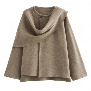 Women's Asymmetrical Draped Knit Cardigan - Short Open-Front Sweater with Scarf Collar