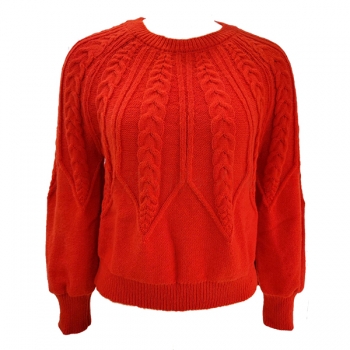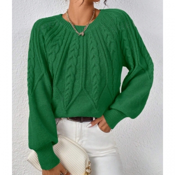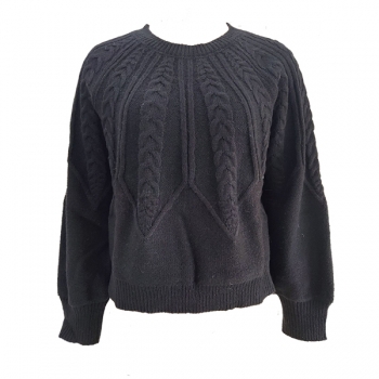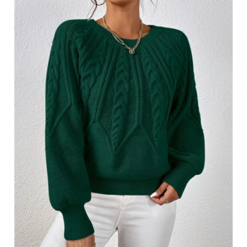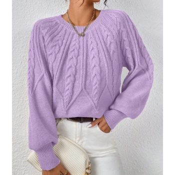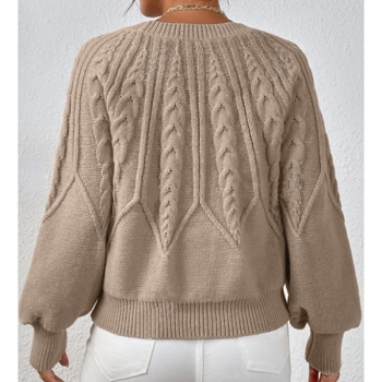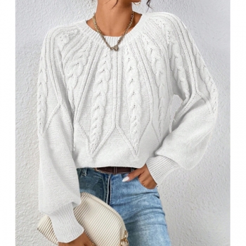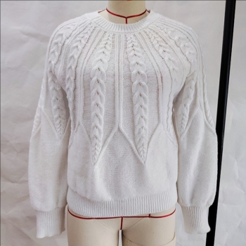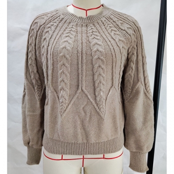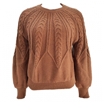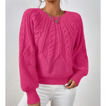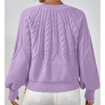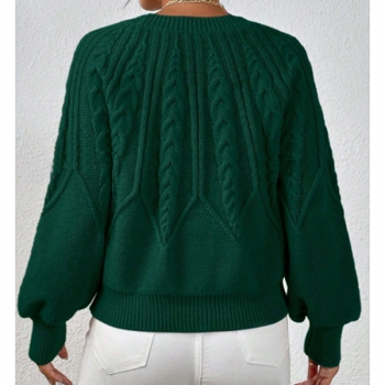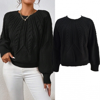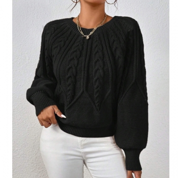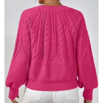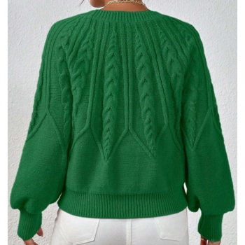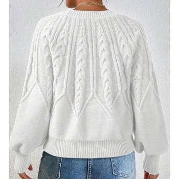 Women's Crew Neck Long Sleeve Cable Pattern Knitted Sweater