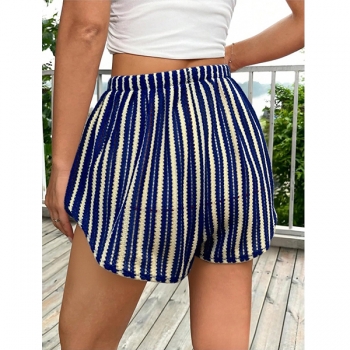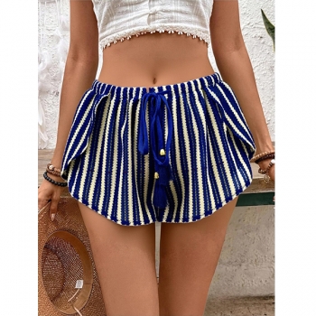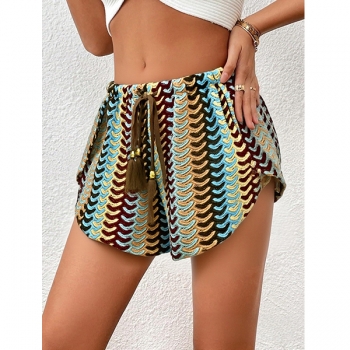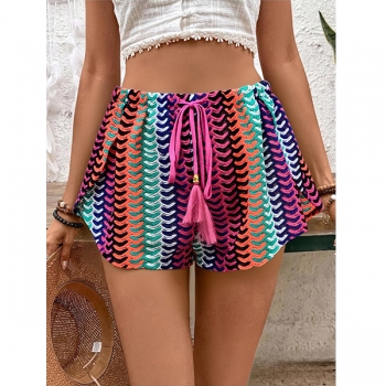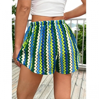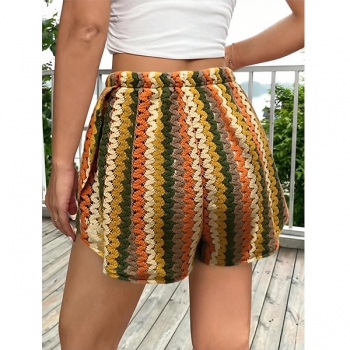Women's Crochet Beach Shorts Cover Up Colorful Chevron Hollow Out Drawstring Tassel Summer Swimwear Bottoms