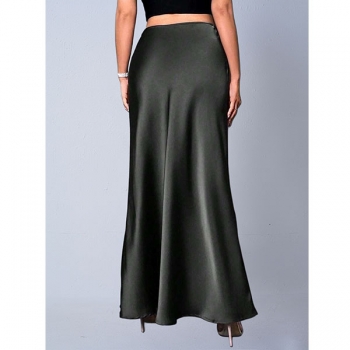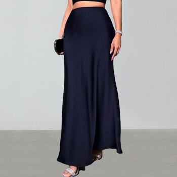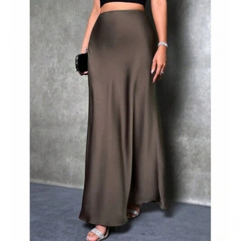 Women's Elegant High Waisted Satin Slip Maxi Skirt