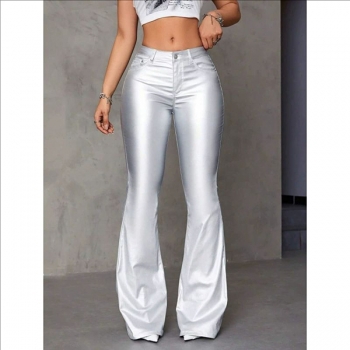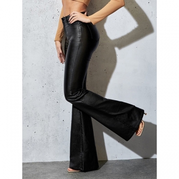 Women's High Waisted Faux Leather Flare Pants - Stretchy PU Bell Bottom Trousers - Slim Fit Bootcut Leggings