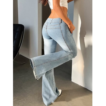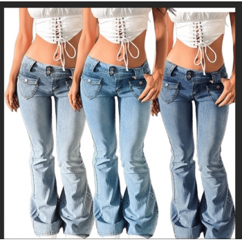 Women's Low Rise Flare Jeans Heart Shaped Pocket Vintage Bell Bottom Denim Pants