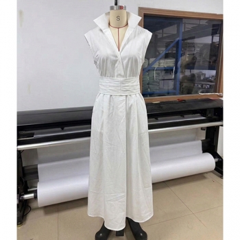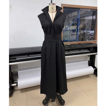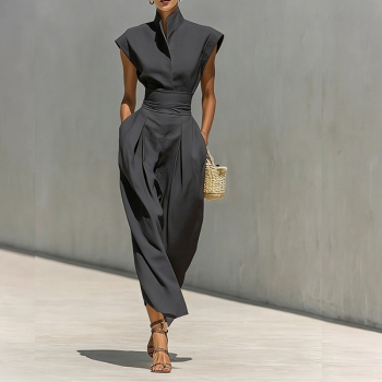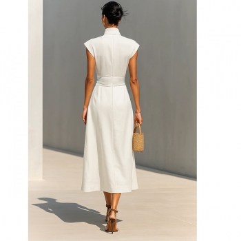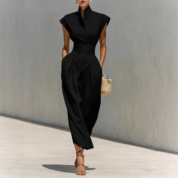 Women's Minimalist Stand Collar Cinch Waist Dress