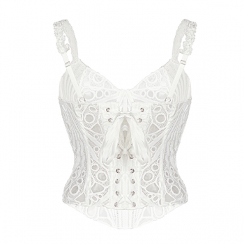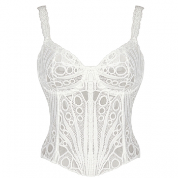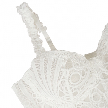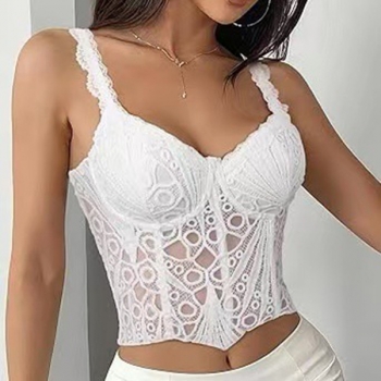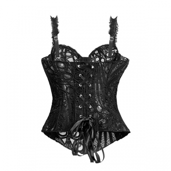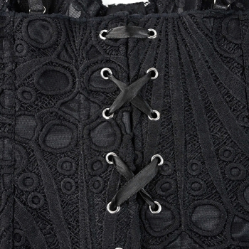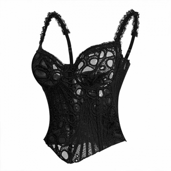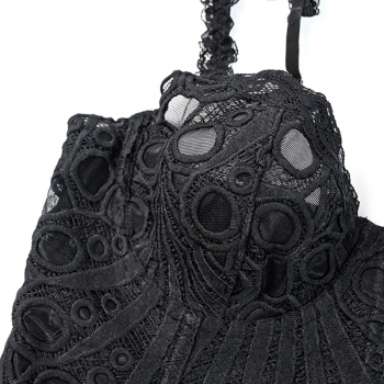 Women's Sexy Black Lace Corset Top - Sheer Floral Bustier Crop Top with Ruffle Straps