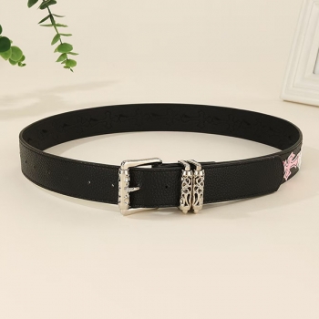 Y2K Gothic Cross Belt for Women - E-girl Punk Style PU Leather Waistband with Colorful Patchwork